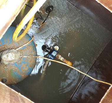 Восстановительные работы начинаются с откачки воды из кессона и очистки камеры от грязи. Далее устройство проверяется на предмет герметичности, меняются уплотнители и производятся сварочные работы.
